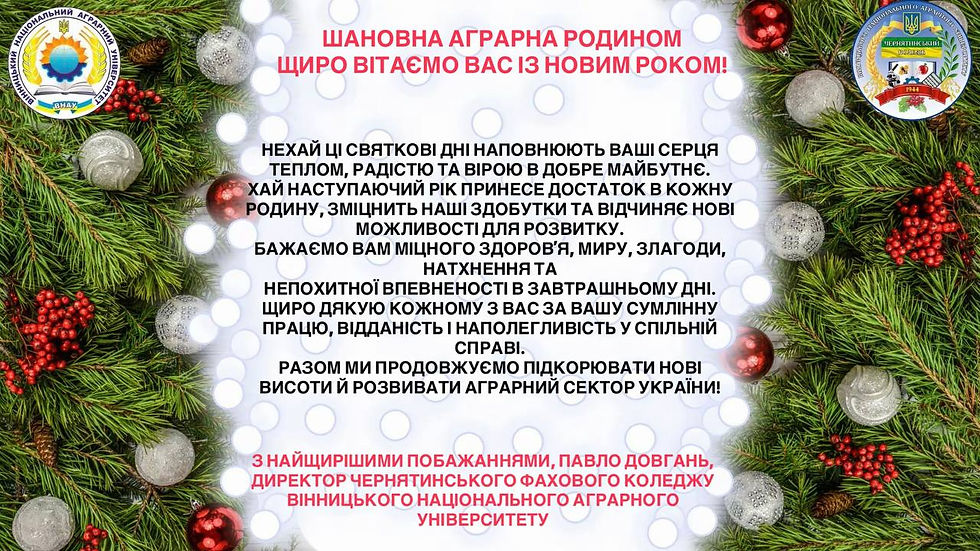 СТУДЕНТСЬКЕ СВЯТО, ЯКЕ НАДИХАЄ! 19 листопада у великій актовій залі Чернятинського фахового коледжу ВНАУ відбулося найочікуваніше свято осені — День студента! Свято, яке об’єднує покоління, дарує емоції та відкриває нові горизонти. З перших хвилин зал наповнився атмосферою радості, молодечого драйву та щирих вітань. 🎤 Ведучі привітали студентів, викладачів та гостей теплими словами, нагадавши, що студентські роки — це час мрій, пошуків, перших перемог і великих відкриттів. Урочистості традиційно розпочалися хвилиною мовчання та виконанням Гімну України. 📣 До слова долучився директор коледжу Павло Олегович Довгань, який привітав молодь, наголосивши: “Ви — приклад для інших і справжня гордість нашого закладу! Живіть на повну сьогодні! Навчайтеся, плануйте, працюйте, відпочивайте, мрійте та реалізовуйте свої мрії СЬОГОДНІ!” Керівник побажав студентам зберігати свій запал, вірити у власні сили та впевнено крокувати вперед, навіть коли складно. У своєму виступі Павло Олегович окремо підкреслив постійну підтримку з боку університету і мав за честь передати щирі вітання від президента Вінницького національного аграрного університету Григорія Миколайовича Калетніка! 🏅 Яскравим моментом урочистостей стало нагородження найкращих студентів коледжу. 📘 Номінація «Кращі у навчанні» — справжня гордість нашого закладу! Починаючи з першокурсників і до випускників, на сцену піднімалися ті, хто наполегливо здобуває знання, демонструє високі результати та надихає інших своїм прикладом. Серед нагороджених — студенти спеціальностей: Агрономія, Облік і оподаткування, Агроінженерія, Садово-паркове господарство, Технологія виробництва та переробки продукції тваринництва. 🌱 Номінація «Кращі у роботі навчальних фермерських студентських господарств» — це визнання тих, хто щодня доводить: аграрна справа в руках молоді розквітає новими ідеями! Керівники, бухгалтери та агрономи студентських господарств «АгроВінн Чер», «Золоті лани», «BRASSICA», «Ярколос», «СОНЯХ», «МРІЯ», «Flowersland» та інших отримали заслужені відзнаки. 🤝 Номінація «Кращі учасники дуальної освіти» — студентів, які впевнено поєднують навчання з професійною діяльністю. 🏡 Номінація «Краща кімната поверху гуртожитку» — приємна традиція, що мотивує творити затишок і комфорт навіть далеко від дому. 🏆 Спортивні досягнення — окрема гордість коледжу! Призери змагань із шахів та мініфутболу отримали свої нагороди. Сильні духом, спритні тілом — справжні чемпіони! 🎶 Святкову атмосферу доповнив виступ Миколи Бучка, який подарував залу щирі емоції та теплий настрій. 🗣 Звернення викладачів, зокрема Олексія Григоровича Губчакевича, нагадали: кожен із них колись був студентом — мріяв, помилявся, ріс і шукав своє місце, так само, як це роблять студенти сьогодні. 👩🎓 Голова студентської ради Олена Луцюк поділилася щирими словами вдячності й віри в те, що студенти коледжу — це майбутнє української науки, аграрного сектору, творчості та культури. 🎥 Кульмінацією став перегляд відео про життя першокурсників — смішного, зворушливого та справжнього. Адже саме таким і є студентство: яскравим, щирим, драйвовим та незабутнім. ❤️ Дякуємо всім, хто створив це свято! Наш коледж — це велика родина, де кожен важливий, талановитий і потрібний. З Днем студента! Хай мрії збуваються, знанн